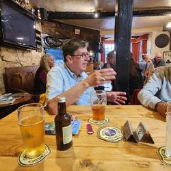Walked back 1 mile to the Cross Hands for diiner: steak & ale pie with mash for me, and hunter's chicken for Joe. Typically, I eat half a meal, and Joe eats a dinner and a half!