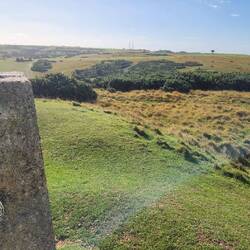 We had a lovely - and long - rest and catch-up at the café with tea and cakes (lemonade and leftovers from breakfast for me, just lemonade for Joe). The other 4 decided to climb the tower (from which you can see some 17 counties, and into Wales on a clear day), but since I descend slowly and was terrified of the segment's reputation as "steep," remembering some segments of the Cleveland Way up north, Joe & I started down.