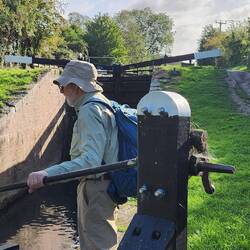 Ball had walked a segment of the CW years ago with a friend. They carried their backpacks and tents, though, and said they threw in the towel after that first day. I shared that's what we were doing in Bath, and he asked how far we walked. When I replied, "100 miles," he was so impressed! "Good on you, mate! That's really somethin'." 😊 He went on like that for some time before heading off for groceries and catching his bus. 😊