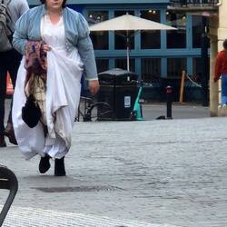 Two were a grandmother - grandaughter pair from the Netherlands 🇳🇱 who had come for the JA festival. How sweet is that? The other was British, whose mother had made her outfit: skirt, jacket, AND bonnet. And the skirt was reversible so she could wear the fancy side out at a ball!