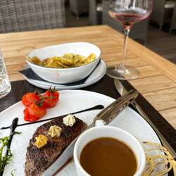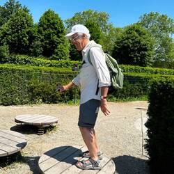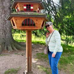 After checking out the scenery nearby, I saw a sign for a village only 2km away - Langenargen. Decided to walk that way. What a good decision. A lovely town with a huge park on the water. Flowers, cafes, playgrounds, and even a castle make for a wonderful Saturday walk. Stopped for a coke in a waterfront cafe and sat there for an hour just watching the water, the very pregnant swan, and the people. Did some geocaching on the way back. Only one successful. (See pic). Weather is perfect and life is good. Walked back to hotel and spent the afternoon organizing suitcase and backpacks for the journey home. Dinner at the lovely outdoor restaurant at the hotel. Food is good, fish from the lake and very generous wine pours. 😂👍. Think I am the only English speaking person I have heard here. (Except for check in people). A very German/Austrian holiday place.もっと詳しく