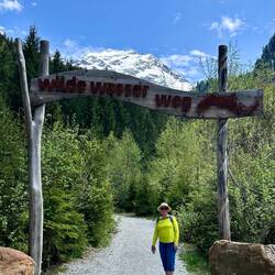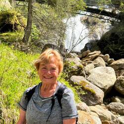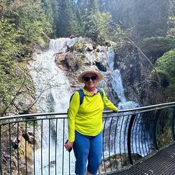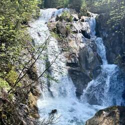 Weather starting to clear, so we had lunch the one restaurant in town that was open and decided to do,the hike we had planned for the morning. The hike was great. Not too difficult, in the valley so not too much elevation. 5 miles round trip with waterfalls everywhere and the snow covered mountains always rising above all. It is truly beautiful here. The chairs that we are sitting on is the cover photo today are on a platform the spans the river right at the big waterfall. You can lie there and enjoy the wonderful view of the waterfall with the Alps above.
