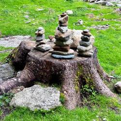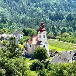 Off before !0 for the hike we had planned. Cable car up the mountain to the starting point. The goal was to hike to a monastery hidden in the Alps. Fun time, not a difficult hike, gravel path all the way. It is a popular trail for day hikers. Lots to see and do around the beginning as well. A slide for “kids” - that would be us. See video. Mountains all around -360. See 2nd video. Took our time, taking pictures and playing with our new app that identifies all the beautiful small Alpine flowers. Arrived at the monastery a bit after noon. Checked out the chapel, souvenir shop and lunch outside looking at the mountains. Took a different way back to the cable car and Carol found the first geocache for the trip! Very exciting. Then we had to do the slide as well. A great day in the mountains.