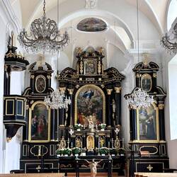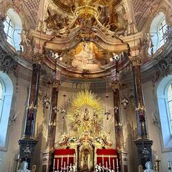 However we did check out the church which was amazing! The church is the centerpiece of the town but it was the cemetery that caught out eye. There are probably around 150-200 graves - ALL had fresh flowers, growing plants and in designed floral beds All the plots were the same size and the “headstones” were decorative metal sculptures. I have never seen anything like it. The inside of the church was just as pleasing and lovely. Spectacular ceiling, all white walls, airy and light pastel,colors. So very modern looking. Even the organ was modern. The pews were all light roughly hewn wood and the stone floor was complimentary to all. A beautiful place. The first chapel on that site was in the early 1500’s, built by Maximillian I, they have had many renovations and clearly a recent one. A great find.