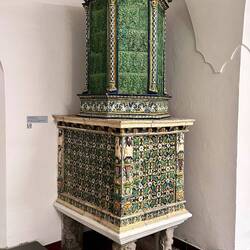Spent the better part of 3 hours at Schloss Ambras, a castle overlooking Innsbruck. The castle was built in the 1500’s and was a gift from Archduke Ferdinand II to his new wife, Philippine. I sort of thought I was “done” with castles a few European trips ago however this one was different and very interesting. Ferdinand was a collector of all things art and curiosities. This claims to be the first museum in history. His collection was extensive with all kinds of lovely Renaissance pieces. Not so much art as “things”. He was clearly a lover of beauty. The museum had lots of techs films, screens to check out and terrific grounds with big trees, benches, a pond with black swans and lots of fish. We enjoyed a very good lunch there in an outdoor cafe.