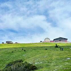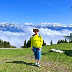 Another great weather day in the Austrian Lake District. I had decided yesterday to take the cog railway train to the top of the mountain right behind where I am staying. It is the steepest train 🚂 in Austria and goes up almost 6,000 feet in less than 4 miles! That is VERY steep. The station is only a couple blocks away from my home and arrived there around 11A. Train left on time and it is a 34 to 40 minute ride to the top. A spectacular ride. I had a window seat. At the top there is a hotel and several cafes. I wanted to hike a bit, and did, but it was a challenge as it is steep down and I knew I had to get back up. 😂. If I had someone else with me I would have hiked down to the middle train station , there were lots of other hikers, but common sense prevailed and I enjoyed the bit I did and then went to check out the rest on the area and, of course, have lunch.