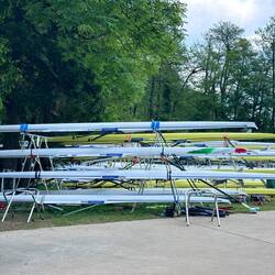 As we discovered yesterday, this weekend is the European Olympic 2023 Rowing Competition on the lake. Lots of TV trucks and grandstand set up at the finish line. We spent some time on out walk watch/ing parts of various races. We stopped for lunch at a cafe near all the set for the finish of the races. Lots of booths selling gear and loud speakers calling the races. As we went around the backside and up a hill we could see the platform for the winners, just like the Olympics. Quite the scene. Later we found the area where all the boats were being kept - hundreds of expensive long boats.