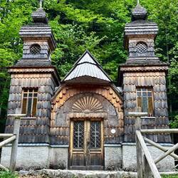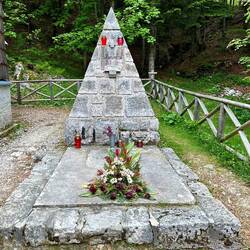 On to our next stop about 45 minutes away, a Russian Chapel in the foothills of the Julian Alps. Before we got there we mistakenly visited Kranska-Gora, a pretty ski village at the base of the mountains. There is a Russian Church there that I thought was the Russian Chapel we were looking for. 😫. However a cute town and very good frozen yogurt and ice cream! 😂. Fortunately the chapel was not far from there up the very windy mountain road. This is a beautiful wooden chapel built in the woods in a tranquil, lovely setting. (See cover photo). During WW I this area was. POW camp for Russian prisoners. They built the road that winds though these mountains. While building there was an avalanche that killed many of the prisoners. This chapel was built by the remaining in their memory. The pyramidal stone I the picture is a grave for many of the soldiers. Just such a peaceful place.