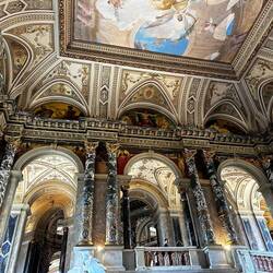 Back to town center with a stop for a sandwich and beer. The area around St Stephen’s cathedral is a long, wide pedestrian space with shops and cafes in all directions. The cathedral is the head of the Catholic Church in Vienna and home of the archbishop. The landmark symbol of the church is the multicolored tile roof. There has been a church on this site since at least 1000AD, probably earlier. Next stop, the Kuntshistorichesmuseum. (Art history museum). A new area of the city to explore - lots os museums in this area. We spent a couple hours enjoying the art and a coffee stop at the lovely Viennese coffee bar in the museum. While the art was wonderful, the building itself is magnificent! All the baroque detail and painted ceilings - beauty everywhere you looked.