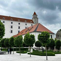 The 2nd half of the tour was the story of the Jewish quarter during WW II and then Communism. A sad story an the impressive sculpture and area around it pay respect to the tragedy. Next we climbed the hill and stairs to the castle. The castle was built purely for defensive purposes and it’s not as “attractive” as many European castles. Renovations began in 2013 and took almost 10,years to bring the fortress to its current state. Extensive gardens were also added. Slovakia is working very hard to add itself to the list of major tourist destinations in Europe. Bratislava is very popular with German and Austrian tourists. A very interesting several hours.