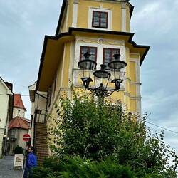 A lazy day for tourism. Day dawned gray, rainy and a cool wind. Had planned to do another walking tour at 10 but decided against it as it was still kind of ugly at 9:30. Weather started to improve some around 10:30 so,out to see the one last thing I wanted to see in Bratislava - the Blue Church. And it is really very blue. 😀. It is a Catholic with no special significance that I could fine except it’s color and architecture. (Hungarian Art Nouveau). The guide yesterday said it is used a lot for weddings. Did another walk around some different parts of old Town and headed home. Picked up a salad for lunch in a grocery store next to my apartment building. Salads are hard to come by in this meat-eating part of the world. I was craving “green stuff”! 😂.