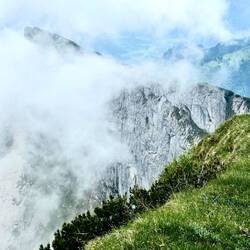 There are 2 pics below (12 and 13) that show the clouds coming in on a narrow ridge line with a sheer rock face. If you blow them up you can see hikers on that narrow ridge! That was NOT me. Amazing! Great lunch with Apple Strudel for desert. No need for dinner tonight.