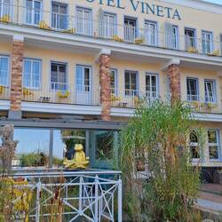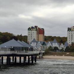 Ein Stück an der Promenade entlang bis zum Hotel Baltic, diesen Klopper aus DDR-Zeiten gibt es immer noch.Die großen Gaststätten und Cafes an der Promenade haben schon geschlossen. Wir gehen runter an den Strand und laufen an der Wasserkante zurück zur Seebrücke. Dort gönnen wir uns ein kleines Softeis auf einer Bank in der Sonne. Die Händler, die heute vor der Seebrücke stehen, können wir nicht mehr begucken, unsere Zeit ist fast um, man glaubte es kaum.Heute haben wir zum dritten Mal ein auffälliges Pärchen mit 2 Kindern gesehen, Fast könnte man glauben, die verfolgen die gleiche Route wie wir. In Bansin gesehen, gestern in Koserow und heute in Zinnowitz. Er hat hohen Wiedererkennungswert, einen Hahnenkamm auf dem Kopf, Tätowierungen überall und eine Hose...rechtes Bein rot,links schwarz. Sie ganz in schwarz und sehr geschminkt. 👍
