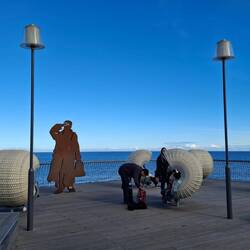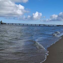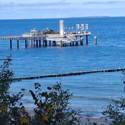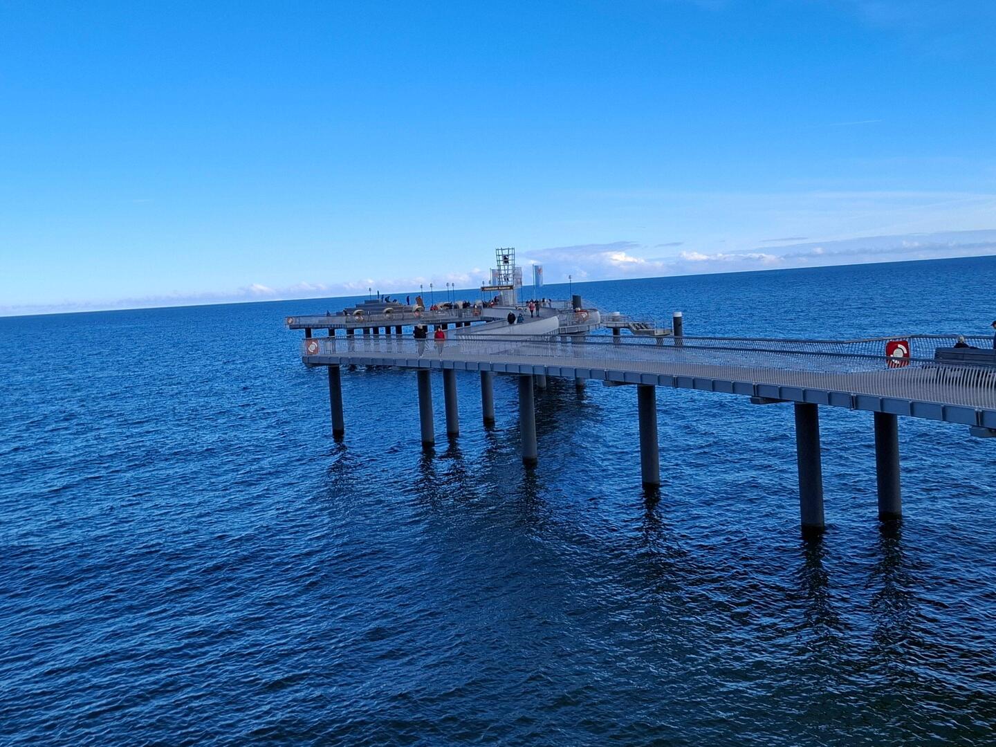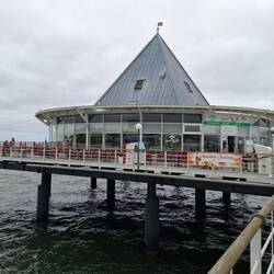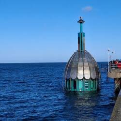 Na gut ,dann ab zur Seebrücke, die Tauchglocke kommt gerade hoch und die Nächsten warten schon .Wir wollen nicht, haben das in Zingst mal mit den Enkeln gemacht. Also ,nach den obligatorischen Fotos zurück an Land und das obligatorische Matjesbrötchen muss her.😋😋 , wie immer !