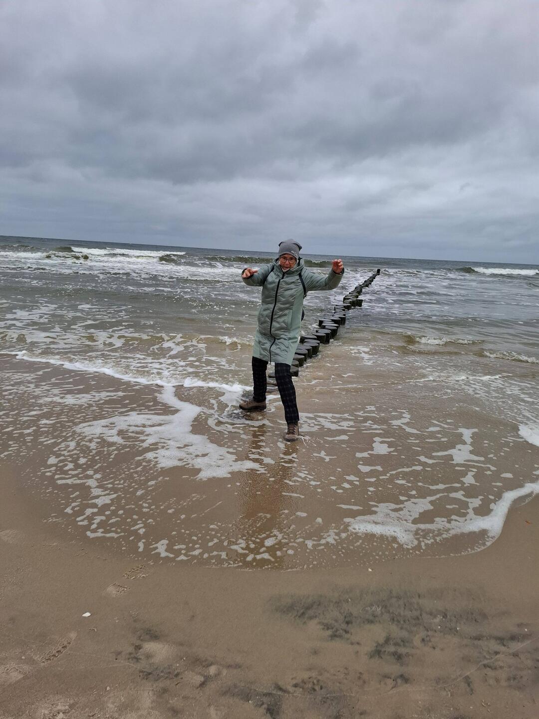 GezginNa klar, ich wollte ganz lässig auf den letzten Buhnen stehen fürs Foto...🤪 und da gurgelt mir die Welle um die Schuhe, Absprung, und Achim hat es festgehalten...😂