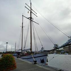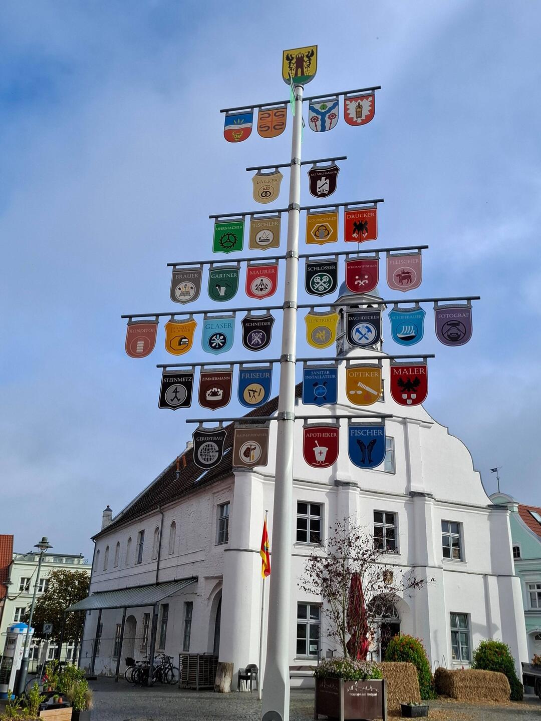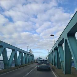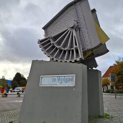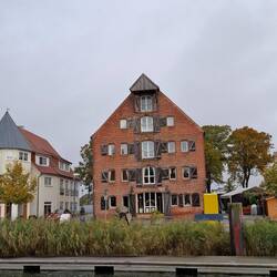 ....fahren wir heute, weil Strand im Nieselregen ist nixe.In Wolgast waren wir noch nie, die Stadt nennt man aufgrund ihrer Lage auch Tor zur Insel Usedom. Wer in die Stadt von Usedom kommend, möchte, fährt über die Peenebrücke, ein Monster in Blau , die den Peenestrom überquert. Sie ist das Wahrzeichen von Wolgast.Wir parken kostenlos an der Kirche und machen uns auf den Weg zur Schlossinsel. Vorher suche ich eine öffentliche Toilette, leider geschlossenen wegen technischer Mängel.🙈 Auf unserem Weg rund um die Insel sehen wir die Peenewerft von weitem. In der DDR erbaut, war sie auf Militärschifffahrt ausgerichtet und hatte 3500 Beschäftigte. Ging nach der Wende ,wie so vieles andere ,über den Jordan. Wolgast verlor damals überproportional viele Einwohner.Heute ist es eine verschlafene,aber charmante Kleinstadt, heute am Sonntag ist nicht viel los.