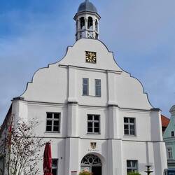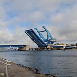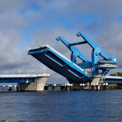 Wir laufen, soweit es geht ,um die Schlossinsel. Wir haben Glück, die Peenebrücke ist gerade offen für die Schifffahrt.Wow, wieviel Tonnen Stahl und Beton da auf und abbewegt werden.Zurück von der Runde gehen wir doch noch zur Fischbude und essen heute ein Backfischbrötchen.Es hat sich aufgehellt, der Regen ist weg ,die Sonne lugt ab und zu hervor aus den Wolken.Wir gehen nochmal ins Zentrum, begucken das schöne Rathaus und die Kirche, welche leider geschlossenen ist.Es ist nicht groß, in die Außenbezirke wollen wir nicht.Ein Kaffee könnte noch her, Im Café Auszeit werden wir fündig, wieder gibt es leckere Sachen.