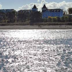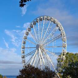 Zurück in Heringsdorf stellen wir das Auto heute auf dem privaten Parkplatz neben der Kirche für eine Tagesgebühr von 7 Euro ab.Morgen ist Montag, da laufen die Politessen wieder...Dann machen wir noch ei n e kleine Runde an der Promenade bis zum Riesenrad, welches nur dieses Jahr dort steht und seine Runden dreht.