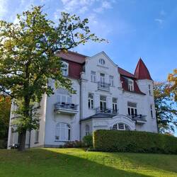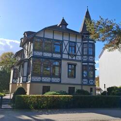 Der Rückweg verläuft über die Promenade, schön ohne Wind.Teils Wald, teils schöne Bäderarchitektur in der ersten Reihe können wir begucken.