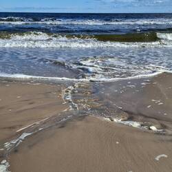 ...während unserer Wanderung von Bansin nach Heringsdorf, wo wir ja eigentlich wohnen. Aber nach dem Frühstück sind wir mit dem Auto nach Bansin zu Pro Home ,unserer Vermietung gefahren. Wir hatten was zu klären. Da wir einen Parkplatz nahe am Strand gefunden hatten,blieb es für 4 Std.dort und wir sind am Wasser entlang nach Heringsdorf gelaufen. Oben an der Düne angekommen, will ich meine Mütze aufsetzen, der Wind pfeift. Mist, sie ist nicht im Rucksack, dabei wollte ich doch.. naja, vergessen...🙄