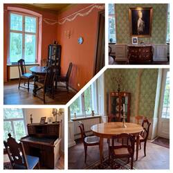 Die verschiedenen Salons, das Schlafzimmer, das Bad, die Bibliothek, eine Bücherstube und den großen Festsaal hat man versucht, mit geschenkten und aufgekauften alten Möbeln detailgetreu neu einzurichten. Selbst bis unters Dach sind alle Balken saniert, auch die Treppen zu den Türmen neu.Die letzten Bewohner waren
