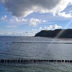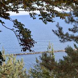 Einen schönen, noch nicht zugewachsenen Aussichtspunkt gibt es dort oben,da kann man bei schönstem Wetter, wie heute, bis nach Swinemünde und die polnische Küste schauen.