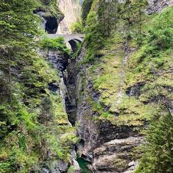 Die Viamala Schlucht bildet sich über 30.000 Jahre. Interessant ist der weiße Findling, den wohl während der letzten Eiszeit ein Gletscher aus einem anderem Gebirge hierher geschoben hat.