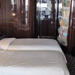 The boat's name is the World Navigator. There's a little less than 150 guests and about as many staff members. Apparently it's almost a one-to-one ratio.