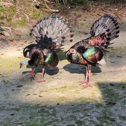 Wir sehen so niedliche Tiere, die aussehen wie eine Mischung aus Nasen- und Waschbär, die Coatimundi oder auch Pizote (=Weißrüsselnasenbär) heißen. Voll drollig. Dann gibt es tolle Pfauen, die ihre Federn in schillernden Farben ausbreiten und dabei glänzen als wären sie mit Metallfarbe besprüht.
