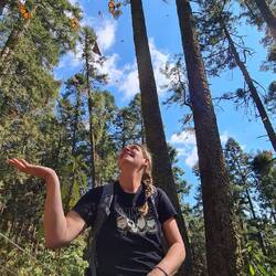 Oben angekommen wandern wir noch 15 Minuten in den Wald hinein und schon bald sind wir von den hübschen Orange-gelben Faltern umgeben und es werden immer mehr. Die Atmosphäre ist magisch und dieser Ort was ganz besonderes. Die Menschen sind alle sehr leise und man hört nur ein leichtes Rauschen von den Flügelschlägen der Monarchen und süßes Vogelgezwitscher.