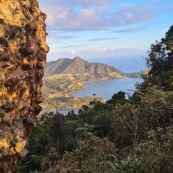 Heute ist schönes Wetter und das will genutzt werden. Bruce wandert mit mir auf den Berg Manaia, in dem Kiwis wohnen - die flugunfähigen Vögel - und tolle Bäume stehen.