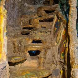 An einer Stelle teilt sich die Treppe und ich gehe rechts hoch. Und wo ist jetzt der Drache? Ich gehe rechts hoch und sehe oben, dass der Drache auf der anderen Seite ist.