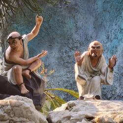 Die Figuren und Statuen sind super. Die Mönchsgestalten sehen so echt aus, dass ich manchmal denke: huch, da sitzt ja einer.