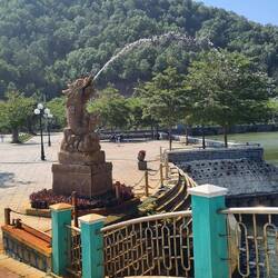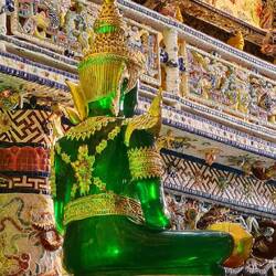 Nach ca. einer halben Stunde steigt man aus und läuft zu Tempel und Pagode, die total abgefahren sind - schon etwas kitschig, aber auch cool. Alles ist aus kleinen Mosaiksteinchen gemacht.