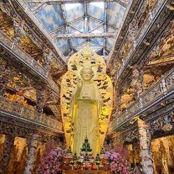 Hier steht auch die größte, aus unsterblichen Blumen gemachte Buddhastatue. 17m hoch.