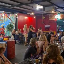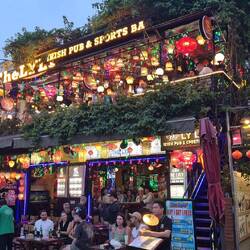 Die "Bedstation" ist größer, lauter und voller Partypeople. Grab-Taxis bringen die Teilnehmer aus meinem Hostel auf deren Kosten dahin und beim Reinkommen wird man mit shots (Schnaps) direkt von der Pulle in den Mund begrüßt. Ich lehne ab. Wir sind eine 4er Gruppe und dann geht das Quiz los (ich bin klar die Älteste im Haus).
