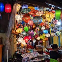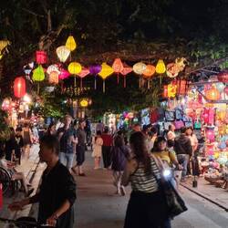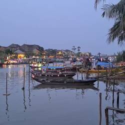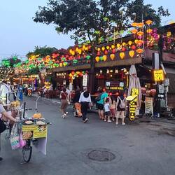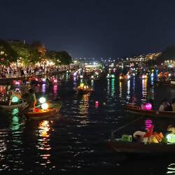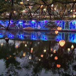 Ich mache ein paar Fotos vom Fluß mit seinen - mit bunten Laternen bestückten - Booten, gehe durch ein paar (volle) Gassen und habe gegen 19h schon genug davon.