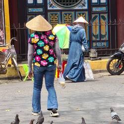 Meine Zeit in Hoi An verbringe ich mit Spaziergängen in Flipflops durch die Altstadt. Es ist schwül und ich schwitze gleich 2 T-Shirts durch. Außerdem plagt mich mein kleiner Zeh, denn es hat sich ein schmerzhaftes Hühnerauge gebildet. Wenn ich Schuhe trage kann ich kaum laufen und ich finde auch keine Lösung dafür. Ich habe unzählige Apotheken besucht, um einen Zehentrenner zu finden oder einen Hornhauthobel, aber hier scheint niemand Hühneraugen zu haben.