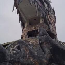 Aber es hat sich gelohnt. Der Blick ist phänomenal. Eine Menge Leute turnen auf dem Drachen herum, was ziemlich gefährlich aussieht, da er sich auf dem Berggrat befindet und es rechts und links steil in die Tiefe geht. Nichts für schwache Nerven.