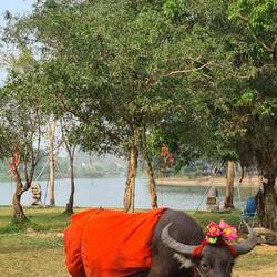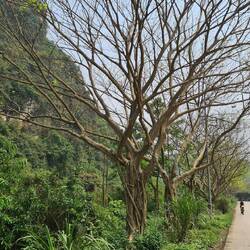 Am 2. Tag drehen wir eine Runde mit dem Motorrad und entdecken so schöne Ecken. Wir fahren durch Reisfelder, an Seen vorbei, in denen sich die Felsen spiegeln, an Bäumen die traumhaft verwachsen an allen Ecken stehen und das lebhafte Treiben der Besucher und Einheimischen still beobachten.