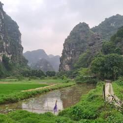 Ich radel durch kleine Wege wieder Richtung Tam Coc und sage die Landschaft in mich auf.