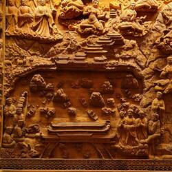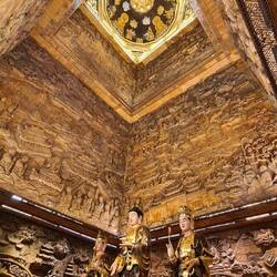 Unter der Pagode kann man die 18 Kammern der buddhistischen Hölle besuchen. Die schauen wir uns an. Alles ist in rotes Schummerlicht getaucht und Stöhnen und fiese Geräusche vermitteln die Qualen der Menschen, die in der Hölle landen. Hier wird zerlegt, geköpft, gepflückt, zerquetscht, gekocht, zerrissen und alles erdenklich Gruselige durch Puppen dargestellt. Wenn man an diese Höllenkammern glaubt, wird man wohl zwangsläufig versuchen ein guter Buddhist zu sein, denn da will man garantiert nicht landen.