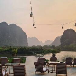 Wir bleiben übrigens nicht in der großen Stadt Ninh Binh, sondern im Nachbarörtchen Tam Coc, wo es viel entspannter und schöner sein soll.