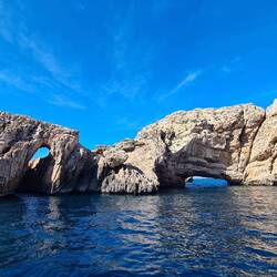 Heute schippern wir im Westen bei San Antonio (Feier-Hochburg) entlang der Küste zu verschiedenen Buchten. Es ist voll schön und das Ufer recht abwechslungsreich. Mal nur Natur, mal gibt es Villen -Leggi altro