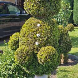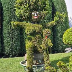 Nach Ibiza mache ich noch einen kurzen Abstecher zur Familie und entdecke einen Garten mit lustigen Heckenfiguren.