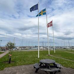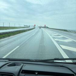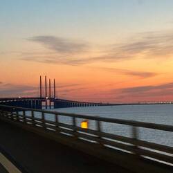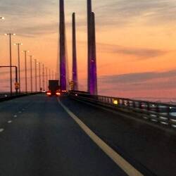 Hoofed it along the freeways. Wanted to get to Malmo and Eurovision. Went over the two toll bridges. One was 20 km long and started underwater. Freaky.