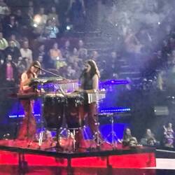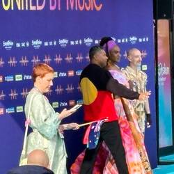 Our first taste of Euro. Watching the artists arrive by bus then be presented on the turquoise carpet. Beyond excited. Even yelled Aussie Aussie Aussie to Electric Fields and got an oi oi oi inOkumaya devam et