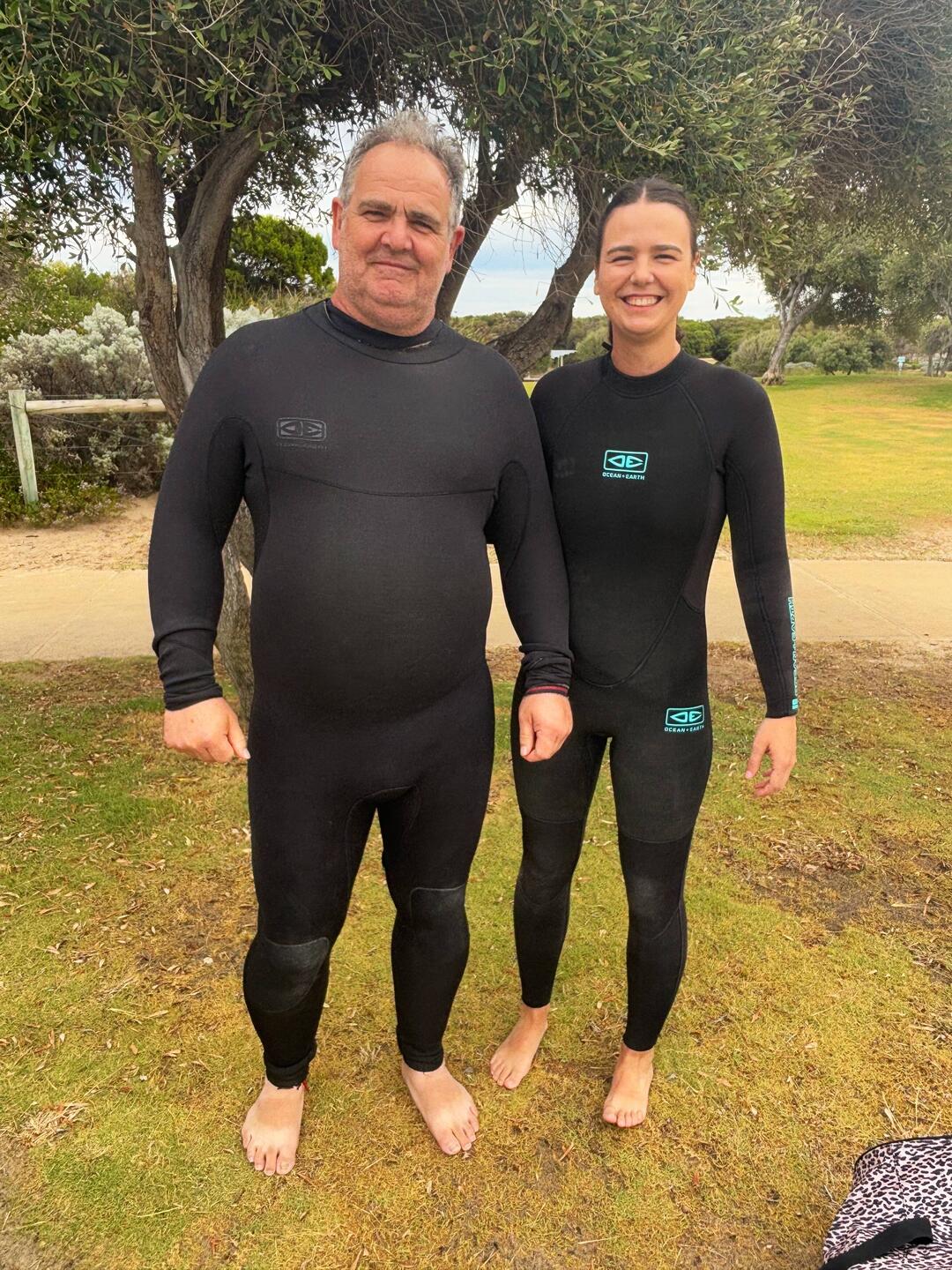 Emma’s birthday present to Graham. Surfing lesson in Secret Harbour.