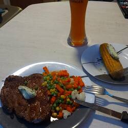 Lecker Steak mit Gemüse und Mais