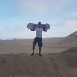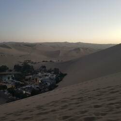 Und nur 10min außerhalb der Stadt befindet sich die Oase Huacachina. Ich wäre fast nicht hierher gefahren aber jeder dem ich begegnet bin hat mir empfohlen zumindest einen kurzen Abstecher hierher zu machen und ich wurde nicht enttäuscht. Untergekommen bin ich im Upcycle Hostel, fußläufiger zur Oase mit Pool u d Rooftopbar. Mit meinen Zimmergenossinen hatte ich mehr als Glück. Eine super witzige Gruppe mit denen ich mich auf Anhieb gut verstand. Nach ein paar sehr entspannten Stunden erklommen wir dann auch gemeinsam die nächstgelegene Höhe Düne für einen spektakulären Sonnenuntergang. Danach ging es wieder Ceviche essen (könnte mich auch nur davon ernähren). Zurück im Hostel wollten wir uns nur noch schnell auf einen Pisco Sour an die Bar setzen, was sich in eine lustige Runde mit meinen Zimmernachbarn, 2 weiteren Deutschen und dem Barkeeper Carlos entwickelte. Viele Biere, eine Flasche Pisco und diversen Runden "ich habe noch nie" auf denglospanisch, viel ich dann totmüde ins Bett.